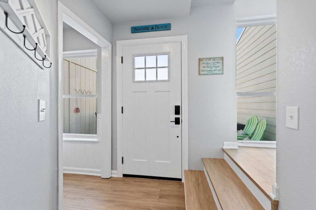 *PRICE REDUCTION* Navarre Beach Townhome. NO HOA. Renovated! Short term rental allowed. Just steps from the sugar-white sands of the Gulf of America and private beach on the sound. Fully furnished, 2-bedroom, 2.5-bath. Vacant Easy Show! New 2022 metal roof and 2021 water heater. The open-concept main level features luxury vinyl plank flooring, tiled backsplash, glazed countertops, plus a convenient half bath. Enjoy multiple outdoor living spaces with front and back decks, and a private master balcony. The spacious master suite boasts a walk-in shower, while the guest bedroom and full bath provide comfort and privacy. Ideal as a full-time...read more